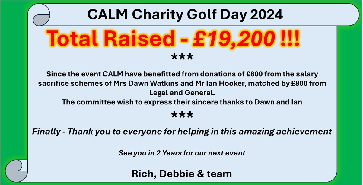 This 2nd golf charity day in memory of Tim is trying to raise further funds on top of the £11000 we raised two years ago to help CALM swim against this never ending tide. Your help and support in this mission is hugely appreciated.